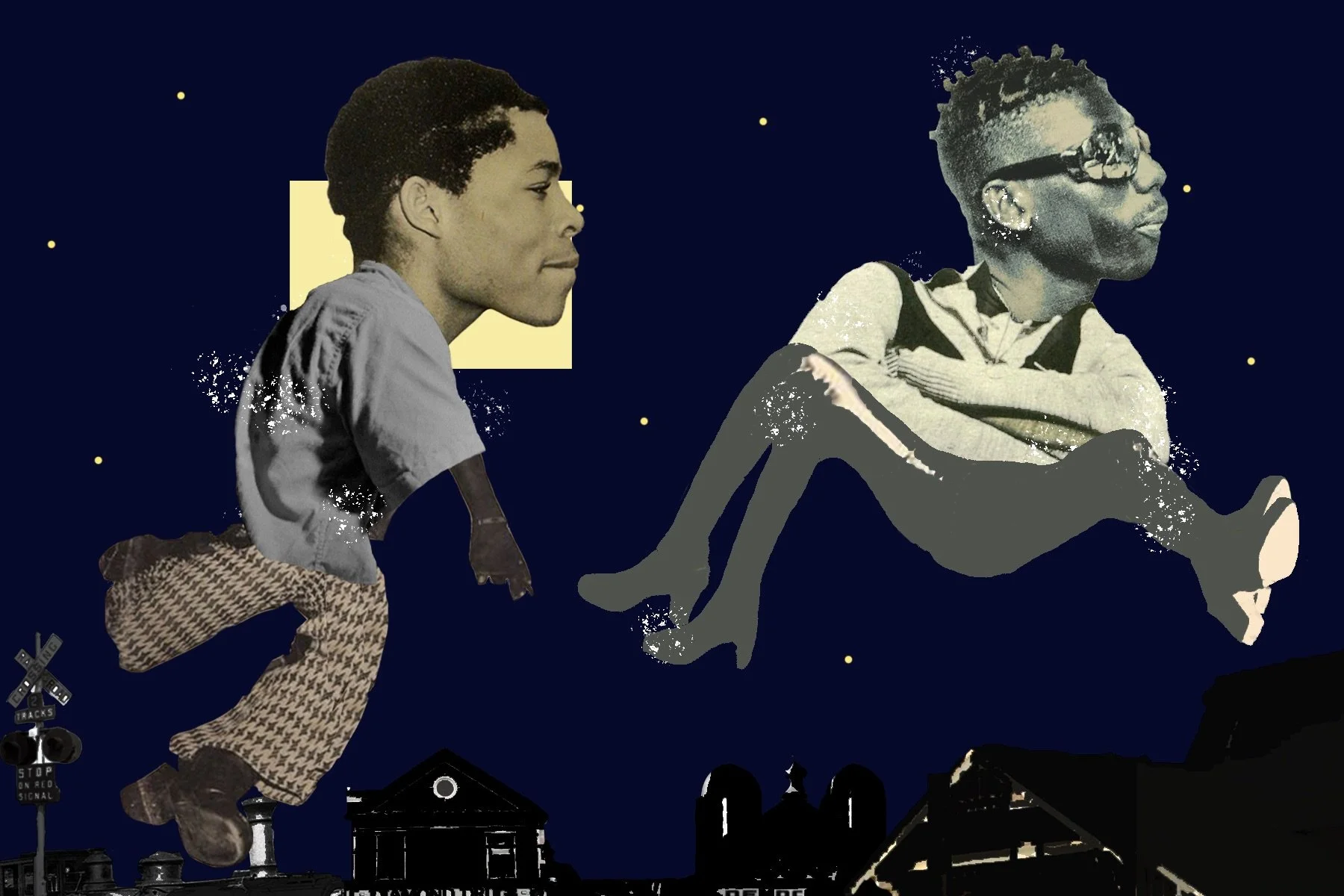 "When Boys Fly," 2025 Digital Collage on Canvas 18 x 12"